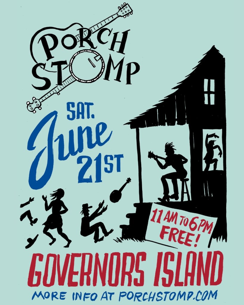 The Repressions are jangly-excited to be playing the King Avenue Stage at Porch Stomp Music Festival! Saturday- June 21st from 11am-6pm. Set on beautiful Governors Island, Porch Stomp invites over two hundred folk bands, artists, and performing arts organizations to use the greenery of Nolan Park, Colonels Row, and Liggett Terrace as a space for performance and education, highlighting artistry ranging from traditional folk to old-time, blues, cajun, Irish, bluegrass and Americana. Now in its twelfth year, Porch Stomp offers unique performance and educational opportunities, including concerts, workshops and open jams.